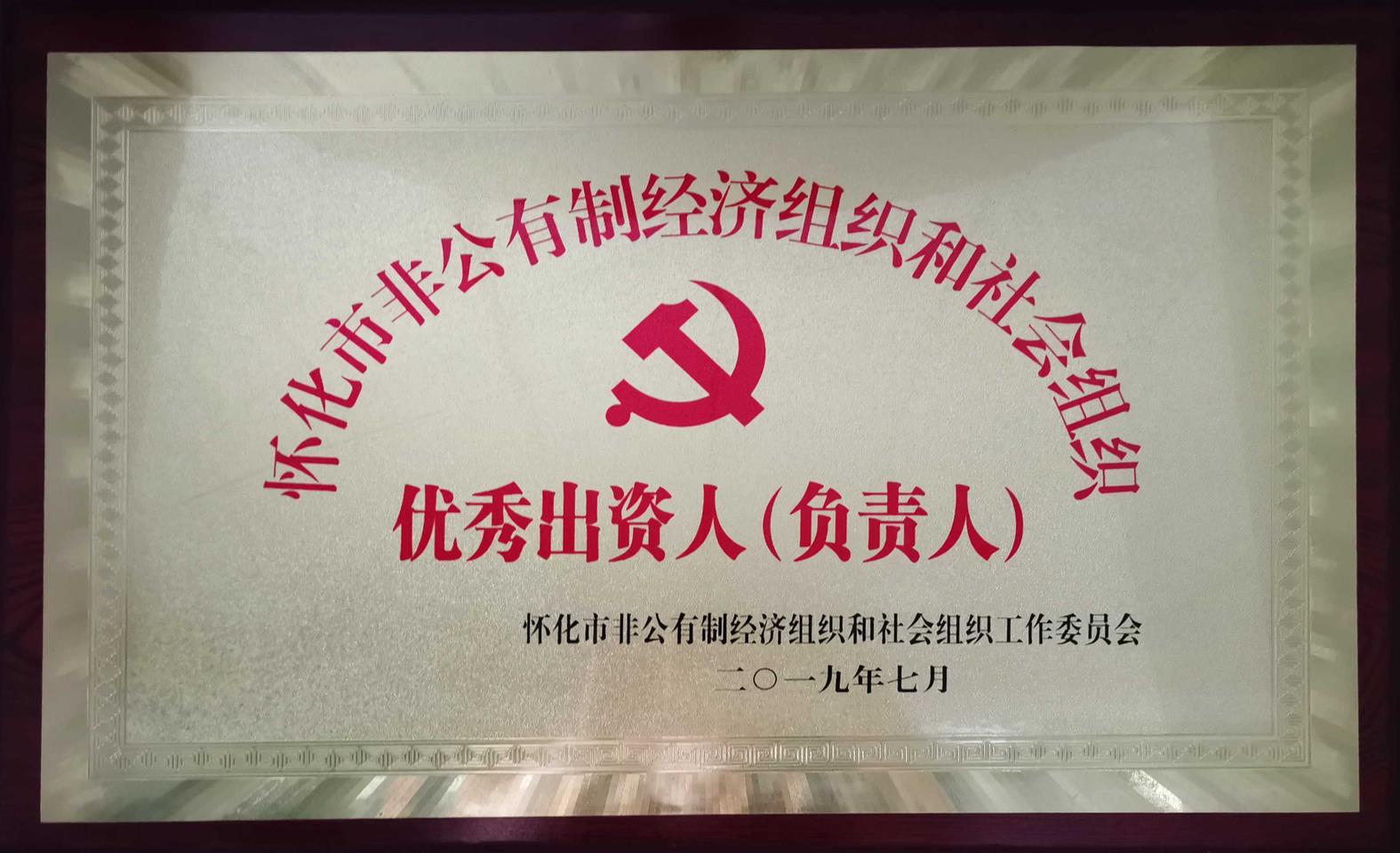 2019年7月被懷化市非公有制經濟組織和社會組織工作委員會評為“懷化市非公有制經濟組織和社會組織優秀出資人(負責人)”